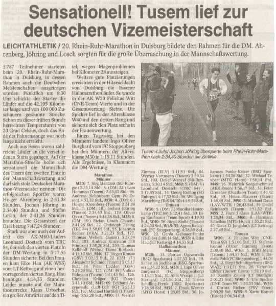 | Silber in Duisburg | Holger Ahrenberg, Jochen Jöhring und Stefan Losch werden Mannschafts-Vizemeister bei den deutschen Marathonmeisterschaften |
